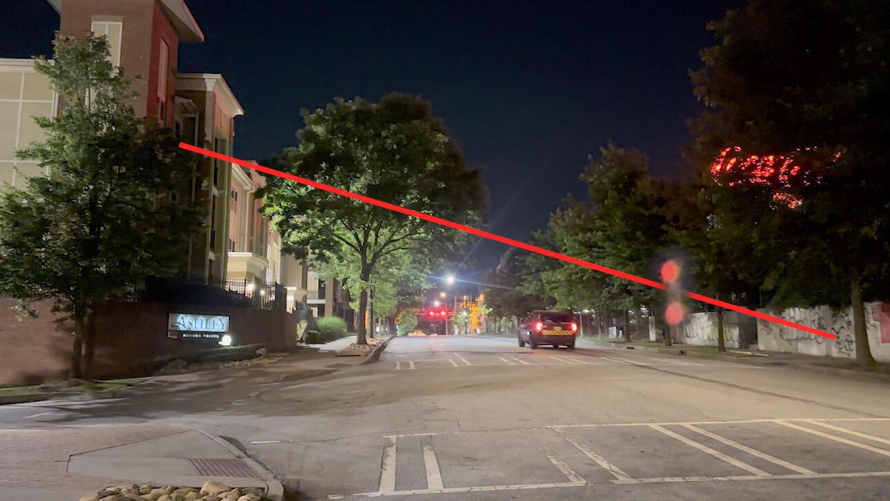 The point at the end of the 200ft line is the drone's approximate location when the video starts. When the ISP returns a blank frame at the 5.5s mark, the drone is flying directly over the apartment, ~10-20 feet above the ceiling. The flyover is marked where the 514ft line intersects the apartment building. Again, I observed the drone flying over the apartment with my own eyes. As I mentioned in text messages immediately after the event, which I show later, the drone was much closer than it appears on video. Once again, it is common sense that if you are filming an object as it moves closer to you, it should grow. Despite the drone flying around 200 feet from the start to the end of the video and descending in altitude, it never increases in size on video, even when the zoom remains constant. Given the drone’s propulsion distorts spacetime, it redirects light rays around itself (akin to gravitational lensing), causing it to appear at a fixed size regardless of distance.The field creates a localized warping of geometry, causing light paths from its edges to warp nonlinearly, mimicking a fixed focal length. This observation proves gravitational field influence, as no known inertial propulsion method can maintain a constant scale during forward motion.